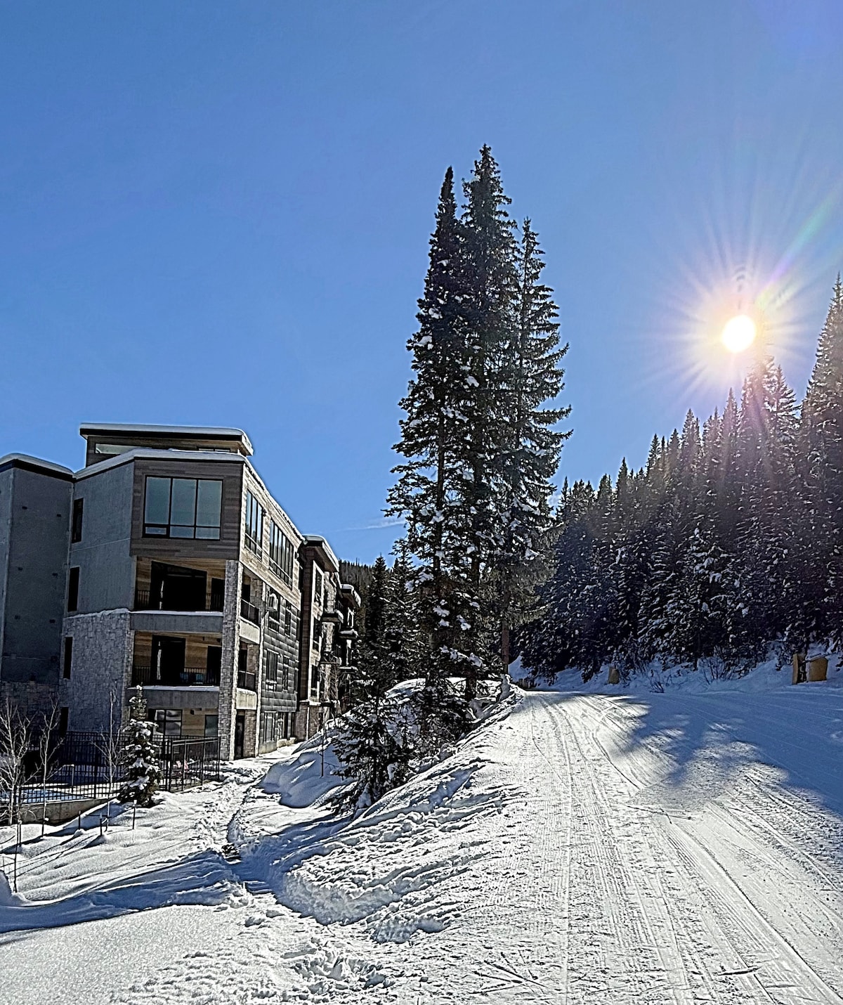 Modern New build ski in/out. 1br + den.