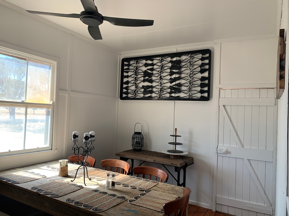 Unplug and unwind with nature. The Sunrise Cottage is your own little hideway, it's peaceful, has the comfiest king beds you will find and full kitchen for self catering. Sit on your private deck and look out at the open spaces, night sky or catch the first glimpse of the sunrise. Cook up a storm on your BBQ or sit around your camp fire and roast some marshmallows.