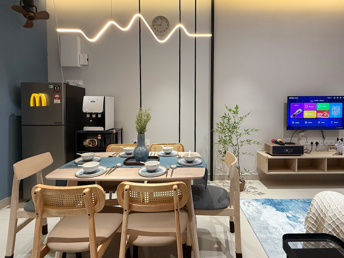 Mūsu minimālisma stila mājoklis ir jūsu ideālās, mierīgās debesis. Aizbēdziet no ikdienas burzmas, iegremdējieties mierīgajās mājīgajās ērtībās. Skaistais augstais skats uz jūru un lielisko atrašanās vietu ir piemērotas pārim un visai ģimenei, kas meklē ceļojumu. Tikai 5 minūšu attālumā no frm Sg. 3-5 minūšu gājiena attālumā atrodas Familymart, Starbucks, restorāns, kinoteātris Sunway Big Box mazumtirdzniecības parks, X parks utt. 8 minūšu brauciens līdz Legolandei. Atpūtieties kopā ar visu ģimeni šajā mierīgajā mājoklī.