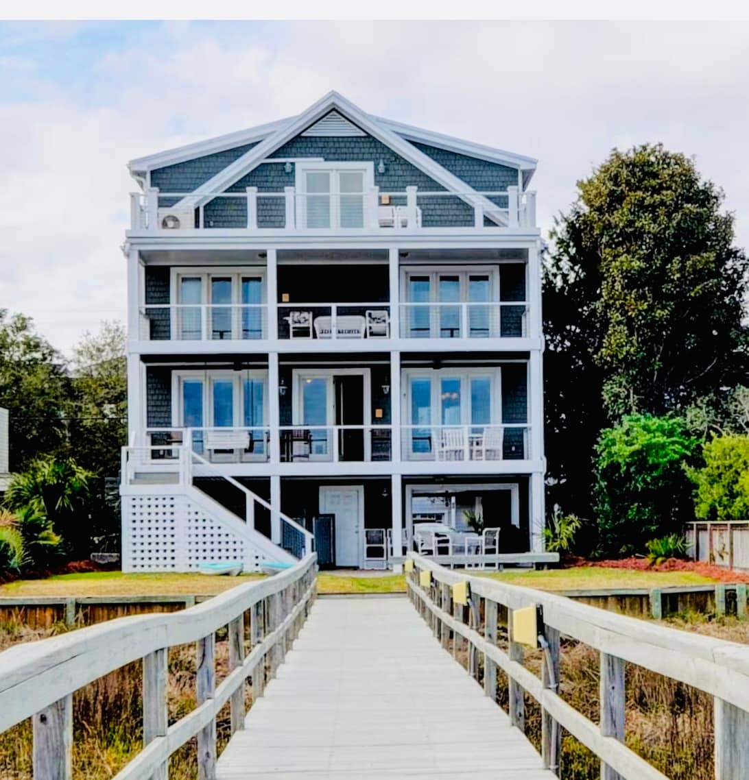 Beautifully located duplex in the tree lined Harbor Island community of Wrightsville Beach. Amazing view of Banks Channel from the top floor porch/sunroom along with the back door stunning sunset view over the marsh and elementary school. Enjoy riding our bikes, paddling on provided kayaks in Banks Channel across the street, a jog around the famous 2.5 mi loop, or a fun day at the beach! Easy 10-minute walk or very short bike ride to the beach, bars, restaurants, coffee, shopping, and ice cream