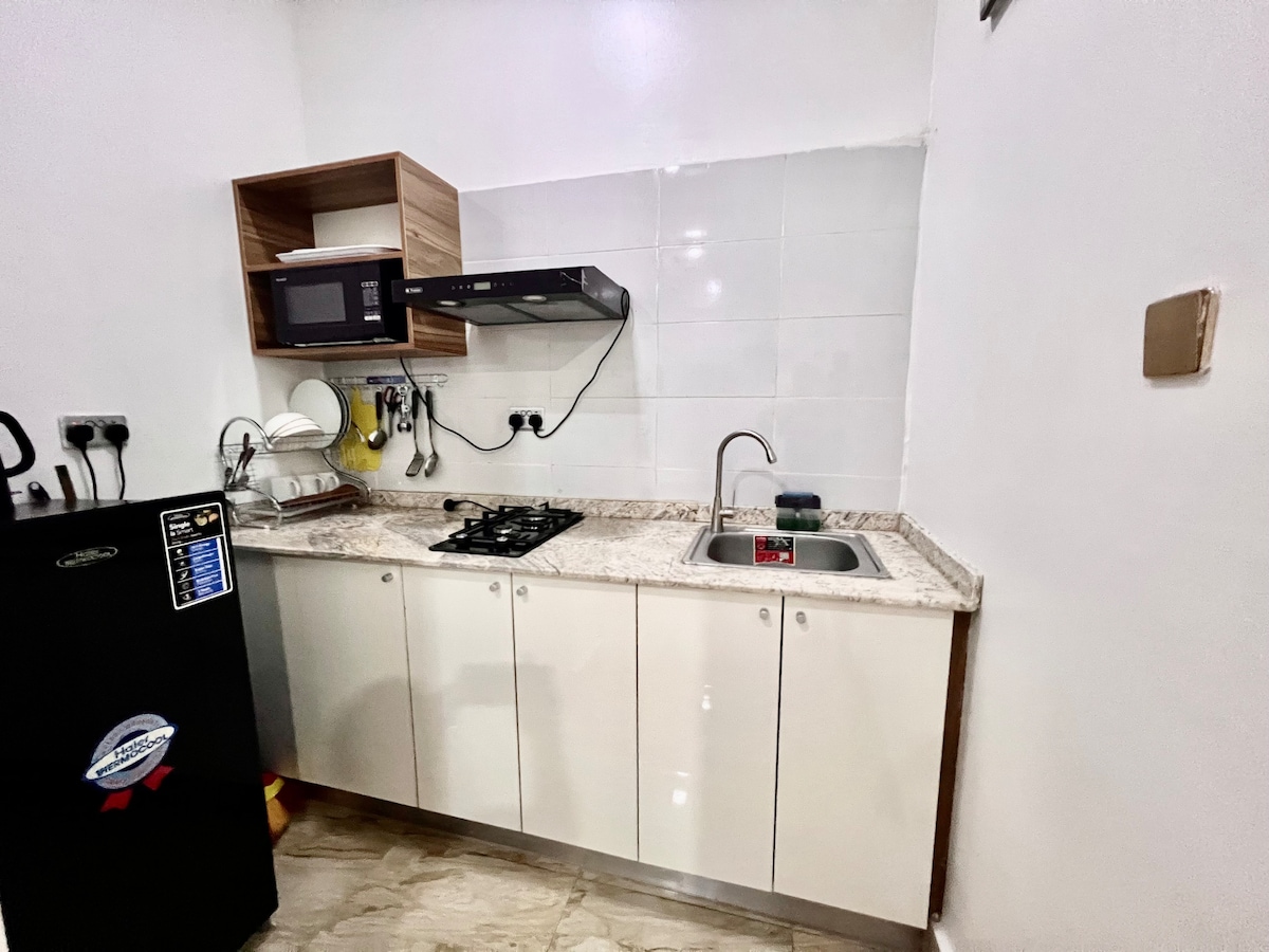 Šis mājoklis ir vienistabas dzīvoklis, kas atrodas centrā un ir gaumīgi pabeigts, lai garantētu ērtu uzturēšanos. Dzīvoklis ir aprīkots ar rezerves elektroenerģiju, lai nodrošinātu diennakts elektroapgādi, ikdienas uzkopšanu, Wi-Fi, pilnībā aprīkotu virtuvi un īpašu darba vietu. Dzīvoklis atrodas centrā, un tam ir viegli piekļūt lielākajiem restorāniem, tirgiem, tirdzniecības centriem un Abudžas centrālajai daļai ar ļoti īsu maršruta laiku.