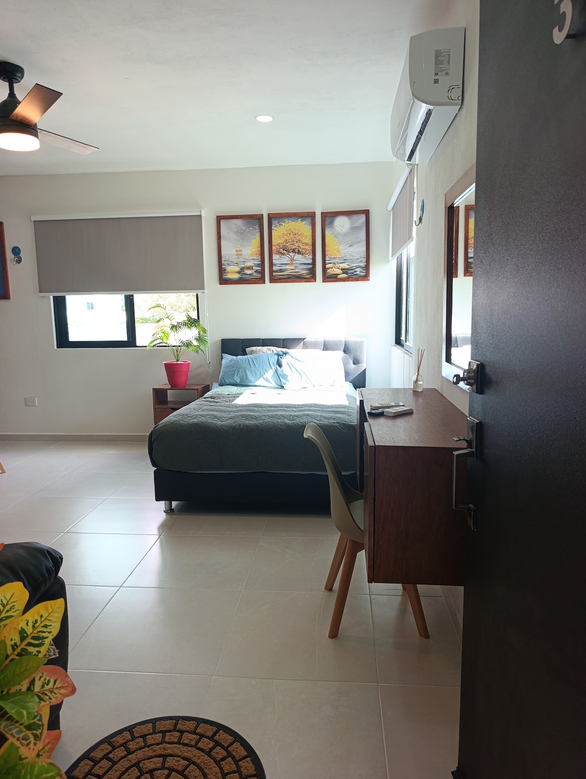 Laipni lūdzam savā patvērumā Temozón Norte - vienā no visstraujāk augošajiem Meridas apgabaliem, kas joprojām saglabā mieru un dabisko vidi. Mūsu dzīvoklis ar vienu guļamistabu ir ideāli piemērots atpūtai un baudīšanai: tajā ir divguļamā gulta, skapis, privāta vannasistaba un ērta divguļamā dīvāngulta viesistabā papildu viesiem. Izbaudiet savu privāto baseinu terasē vai izmantojiet ēkas papildērtības, piemēram, sporta zāli, kopējo baseinu, mīļdzīvnieku parku un pasākumu telpu.