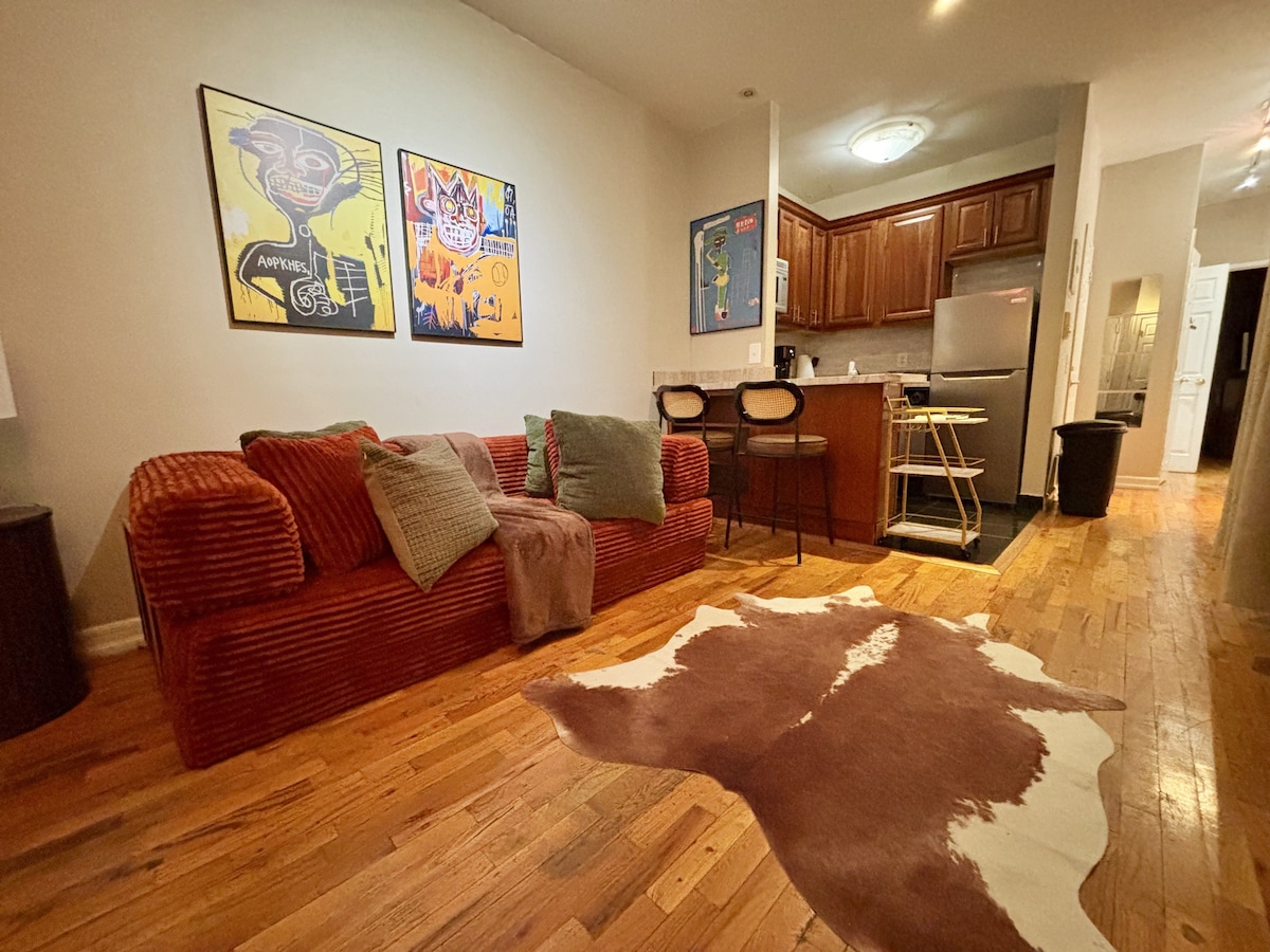 Laipni lūdzam Vintage Luxe - satriecošā 1894. gada apskates objektā Sugar Hill, kas atjaunots greznā boutique! Šajā stilīgajā dārza līmeņa mājoklī ir pārsteidzošs neokvineta interjers, atklātas ķieģeļu sienas un izcila atrašanās vieta (Transit Score 100!). Telpās ir divguļamā gulta (Queen), ātrs Wi-Fi, īpaša darbstacija un pilnībā aprīkota virtuve. Izejiet ārā uz savu privāto pagalmu ar šūpuļtīklu - retu Ņujorkas greznību. Ideāli piemērots individuāliem ceļotājiem, pāriem vai nelielām grupām, kas meklē centrālu un elegantu mājokli.