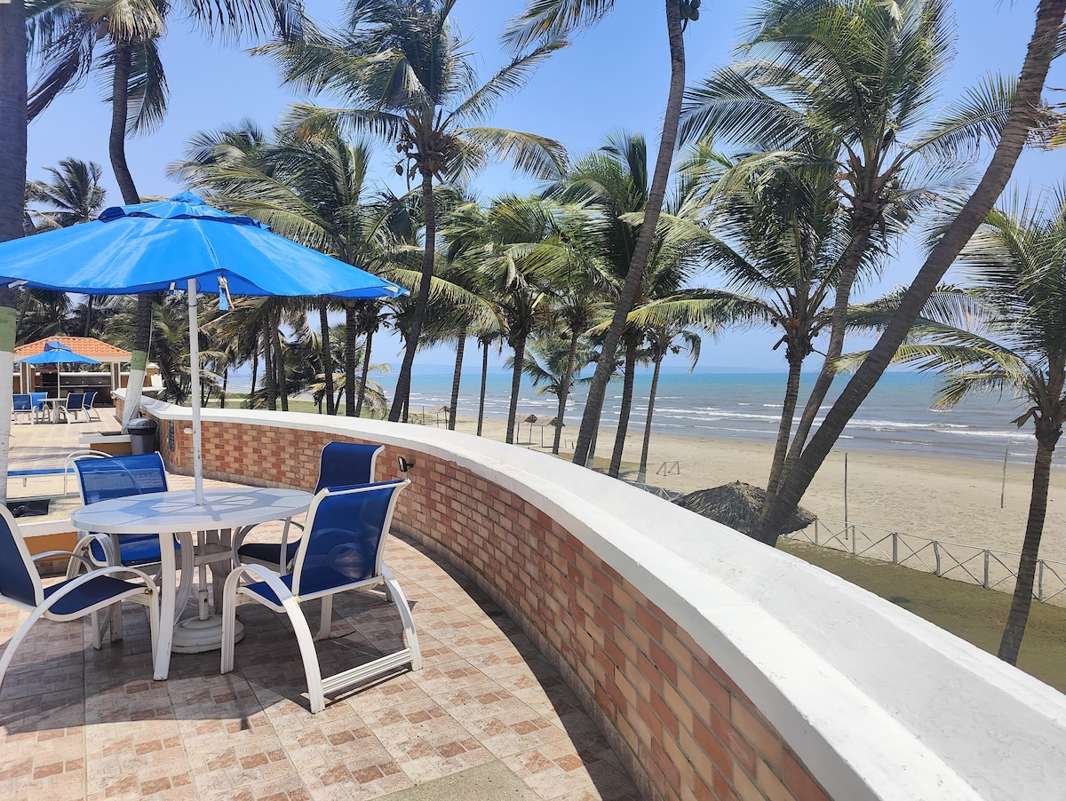 Hermoso apartamento frente a la playa con acceso a la misma, ideal para disfrutar con la familia y amigos. A 15min en carro del centro donde se encuentra el area comercial y los muelles a los cayos. Totalmente equipado , cuenta con piscina, jacuzzi ( no tiene precio adicional ) wifi, aire acondicionado , planta electrica para areas comunes, pozo de agua, estacionamiento privado y vigilancia las 24h del dia.
