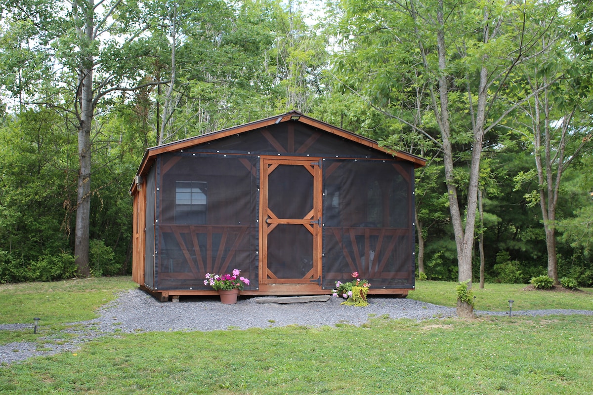 Atbrīvojieties no tā visa, kad paliekat zem zvaigznēm. Šis ir skaists namiņš ārpus režģa, kas atrodas dabā. Tas ir vienas istabas namiņš ar divām "queen" izmēra gultām. Nav tekoša ūdens, taču namiņā ir pārnēsājama tualete un āra duša. 12 V apgaismojums un USB porti tālruņu uzlādei. Izbaudiet gleznainos skatus no āra ugunskura vietas vai verandā! Ņemiet līdzi savu ēdienu un dzērienus. Ir tīra gultasveļa. Apskatiet mūs, lai gūtu lielisku autonomu pieredzi!