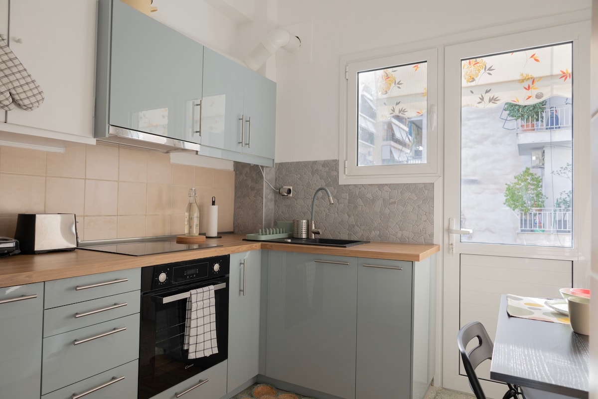 Feel right at home in this renovated, sun-filled apartment in Pagrati (4th floor). A cozy retreat that combines local vibes with modern comfort. Highlights: 🚀 500 Mbps Wi-Fi: Fast fiber optic, perfect for digital nomads. 🛏️ Supreme Comfort: 2 King beds with premium quality mattresses for a restful sleep. 🏙️ View: Balcony with open city views, near the Stadium. Fully equipped so you won't miss a thing. The perfect "home away from home" for travelers seeking quality and relaxation.