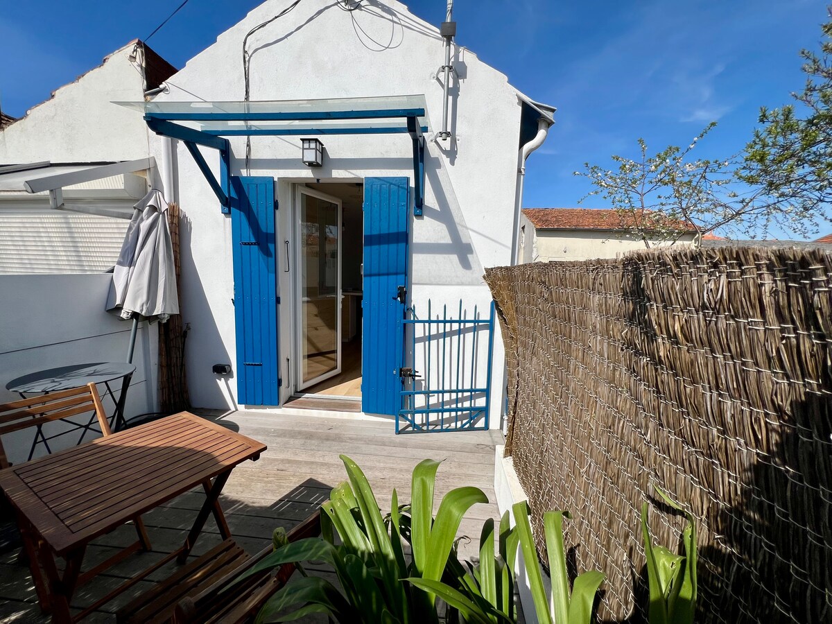 Pilnībā atjaunota burvīga māja. Mājīga terase 15 m2 platībā ļaus sauļoties Skaista viesistaba ar pilnībā aprīkotu virtuvi. Guļamistaba ar ģērbtuvi, kas aprīkota ar Emma matraci 140*200, vannasistaba ar tualeti. Tas ir paredzēts komfortam, kas, cerams, ir optimāls modernā stilā. Viss absolūti mierīgā 5 minūšu gājiena attālumā no pludmales, 8 minūšu attālumā no Chatelaillon pilsētas centra un tās tirgus. Ātra piekļuve La Rochelle /Île de Ré un Oléron/Boyard