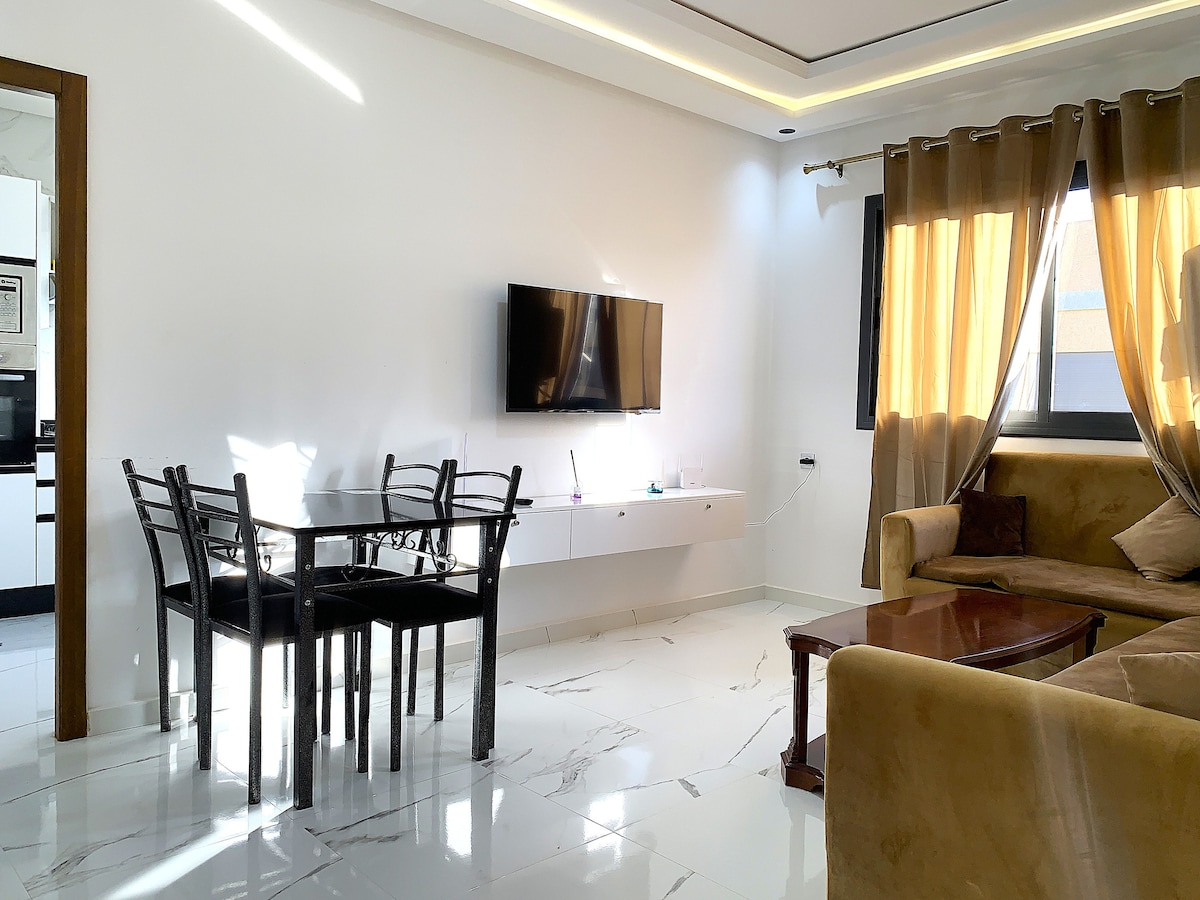 Moderna studija Nadorā, 3 min attālumā no karnīzes. Restorāni un mošeja ēkas pakājē. Lieliski piemērots ērtai dzīvošanai. Ieejot dzīvoklī, jūs atradīsiet: ✔ Guļamistaba: divguļamā gulta ✔ Mēbelēta virtuve ✔ Tualete ✔ Vannasistaba ✔ Televīzija, ✔ Wi-Fi ✔ Gaisa kondicionētājs Ideāli piemērots pāriem vai darījumu ceļotājiem. Izbaudiet patīkamu uzturēšanos ar visām nepieciešamajām papildērtībām. Rezervējiet tūlīt, lai baudītu neaizmirstamu piedzīvojumu Nadorā
