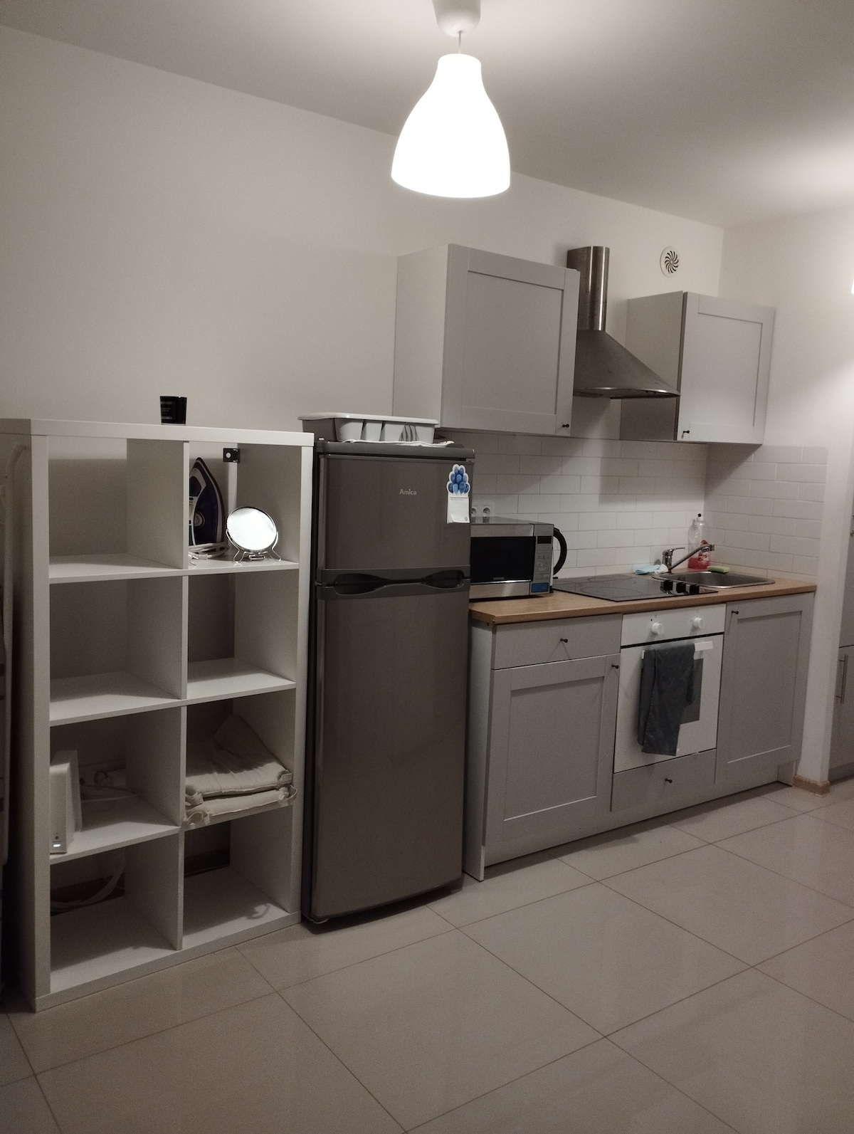 Ērts, pilnībā aprīkots dzīvoklis jaunajā ēkā. Dzīvojamā istaba ar atvērtu virtuvi, kas sadalīta ēdamzonā un atpūtas zonā. Guļamistabā ir liela gulta un plašs drēbju skapis. Ir arī iebūvēts skapis kā papildu glabāšanas vieta. Tuvumā ir veikali, restorāni un kafejnīcas Aprīkojums: gaisa kondicionētājs, espresso automāts, tējkanna, gludeklis, gludināmais dēlis, veļas mašīna Nokļūšana no Šopēna lidostas 20 min taksometrs 50 min saziņa no Modlinas lidostas 50 min taksometrs 120 min saziņa