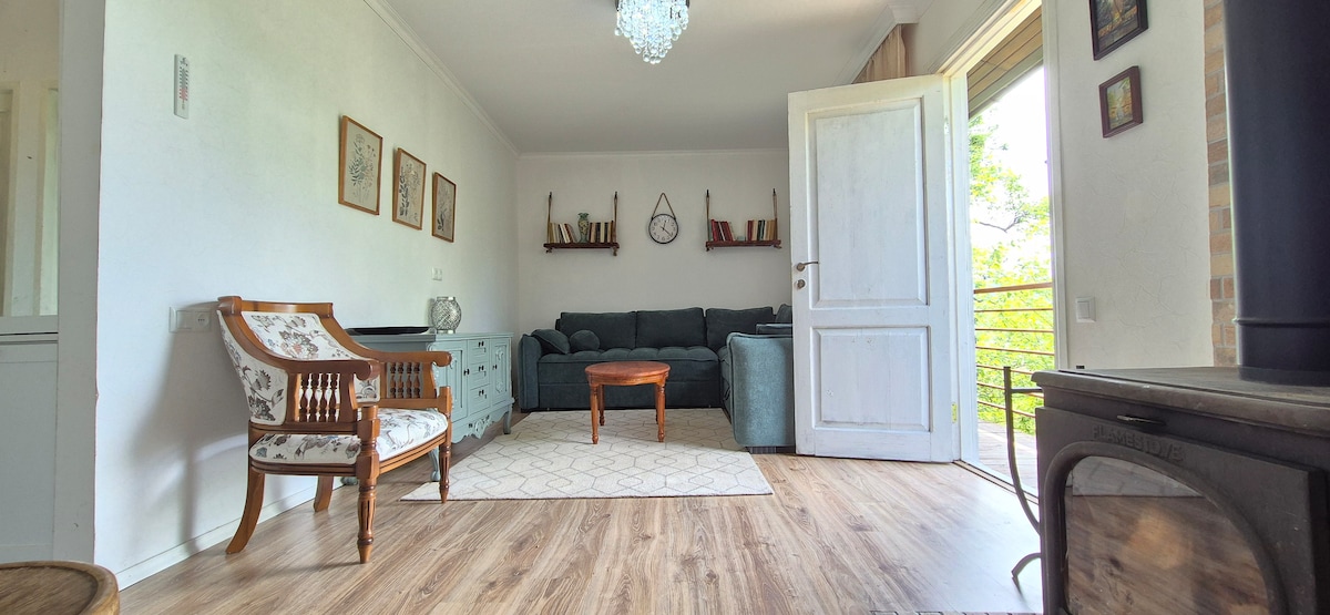 Our charming wooden cottage is nestled on a spacious forested property, offering a peaceful retreat surrounded by nature. The cottage features two comfortable bedrooms, one bathroom, a cozy living room, and a large veranda perfect for relaxing and enjoying the fresh air. Whether you're looking to unwind in a quiet natural setting or spend quality time with family and friends, our cottage provides the perfect escape.