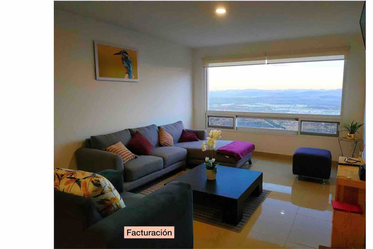 Baudiet kopā ar ģimeni ir omulīgi, ar pastaigu komerciāliem laukumiem, restorāniem, aptiekām, ar Walmart Express 50m2, klīniku. Condesa Zibata -Recamber Main Queen ar ieeju skapī un vannasistabu. - Otrā guļamistaba ar skapi un 2 vienvietīgām un divvietīgām gultām -2 pilnībā aprīkotas vannasistabas - Kafijas automāts - Liels Casa de las Lomas - Vairāk nekā 6P -Pantalla 58 - Bluetooth audio kvalitātes skaņa. - Skats uz Hermosas ieleju - Ģērbtuve un vannasistabas - 100 m ir veļas mazgātava/ķīmiskā tīrītava. - Kāpņu izmantošana
