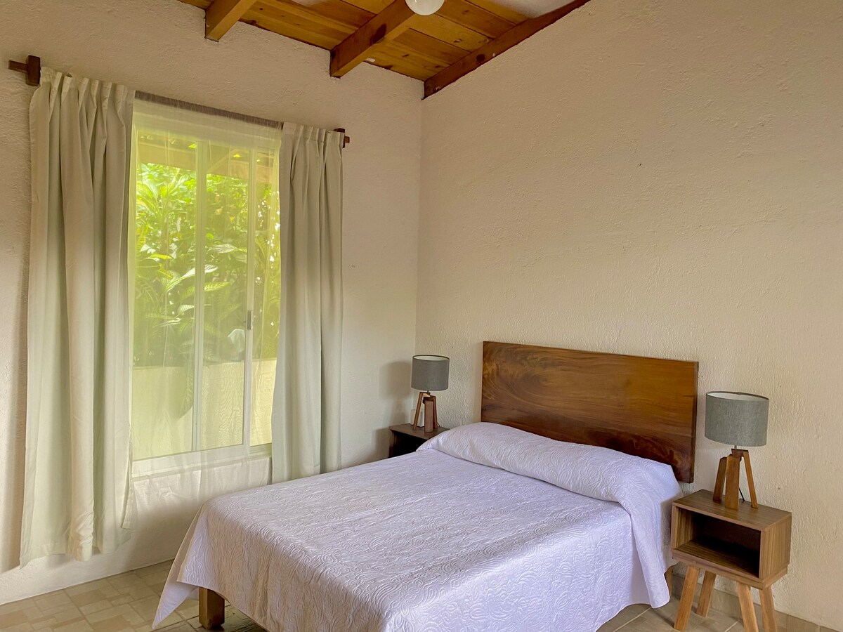 Damiana dzīvoklis El Tamarindo Casa Calamondin ģimenes kompleksā ir divistabu autonoms dzīvoklis ar vienu guļamistabu ar gaisa kondicionētāju, viesistabu ar papildu gultu un ventilatoriem (bez gaisa kondicioniera), virtuvīti, lieliem skapjiem un privātu vannasistabu, kas atrodas tikai divu kvartālu attālumā no La Ropa pludmales Zihuatanejo, Meksikā. Tai ir neatkarīga piekļuve no dārza zonas. Citi viesi un ģimene var tikt izmitināti citās īpašumā esošajās dzīvojamās vienībās. Ievadiet datumus, lai pārbaudītu mūsu sezonas atlaides.