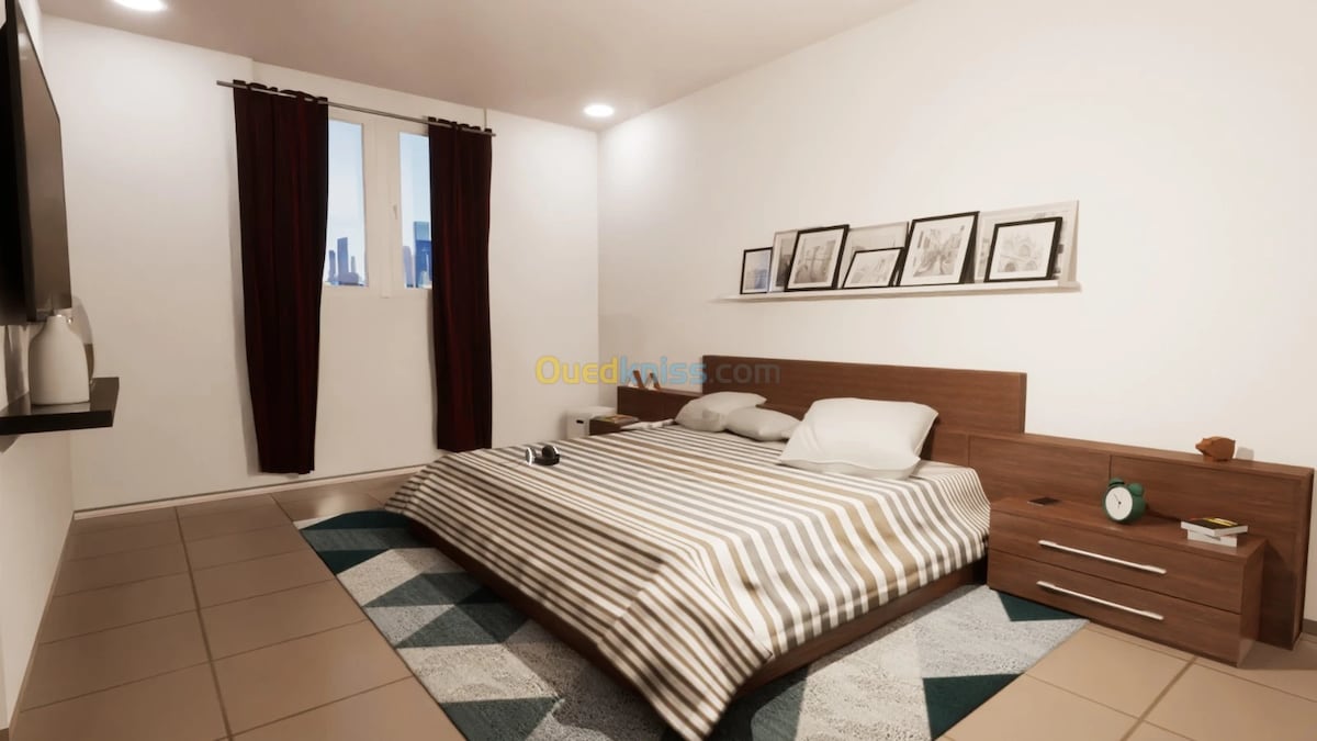 Plašs 4 istabu dzīvoklis, labi aprīkots, 3. un pēdējā stāvā, 2 terases ar elpu aizraujošu skatu, ar gaisa kondicionētāju (2 vienības, kas dzesē visu māju), autostāvvieta pieejama vienai automašīnai slēgtā pagalmā pie galvenās kāpņu ieejas, kas atrodas ļoti klusā apkaimē, ar pilnīgi neatkarīgu piekļuvi, 10 minūšu attālumā no pilsētas centra, 10 minūšu attālumā no Skikda Corniche.