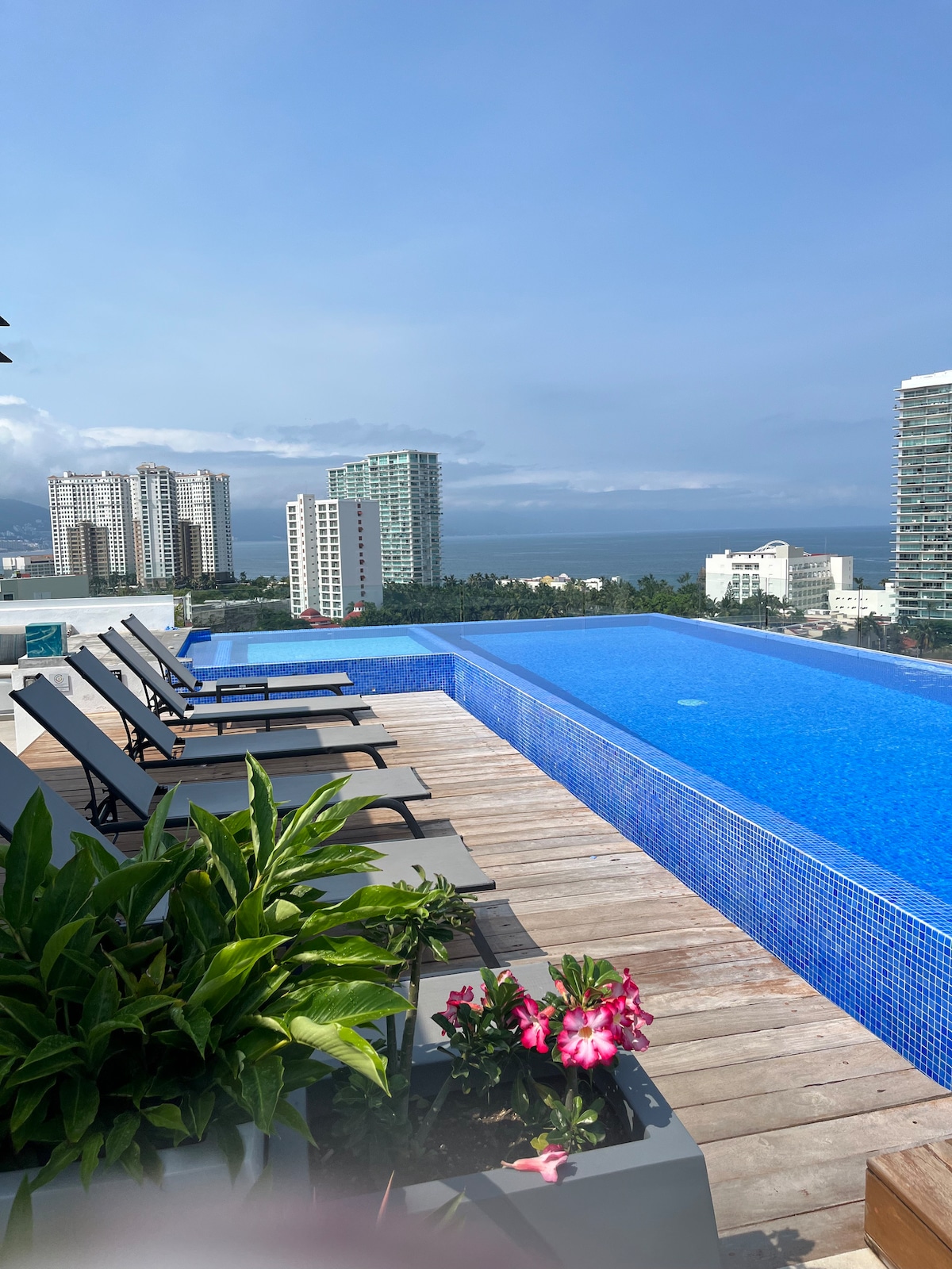 Laipni lūdzam savā MODERNAJĀ 7. FL dzīvoklī. Jūsu jumta bezgalības baseins ar ELPU AIZRAUJOŠU SKATU uz jūru un kruīza kuģiem: vienkārši satriecošs! Mūsu mājoklī ir visas ērtās papildērtības. Grils uz jumta vai sporta zāle ar skatu? Sapratu! Viss atrodas ideālā vietā; tikai 12 minūšu gājiena attālumā no pludmales, restorāniem, bāriem, pārtikas precēm, tirdzniecības centriem, kino un slimnīcām. Malecón, Romantica un Marina atrodas 10 minūšu brauciena attālumā! JŪSU sapņu atpūta ar satriecošu skatu uz jumtu tieši šeit, skaistajā PV.