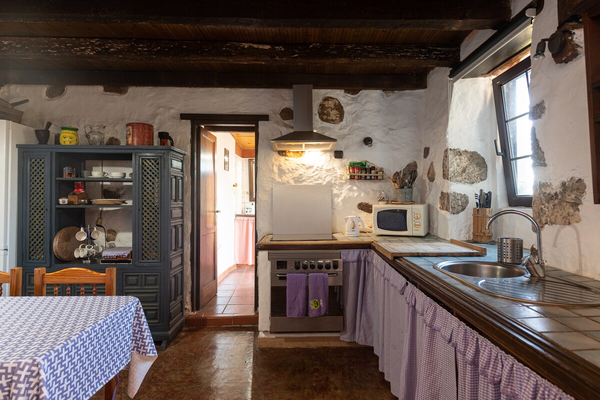 ✨ Laipni lūdzam La Casa de Arriba ✨ "Māja kalnā", kas atrodas pašā Grankanārijas sirdī, ir ar mīlestību atjaunots, 300 gadus vecs tradicionāls kanāriešu mājoklis ar elpu aizraujošiem skatiem, kas stiepjas līdz apvārsnim, un augšup uz salas augstāko virsotni, no kuras paveras skats uz mierīgo Arbejales ciematu. Šī unikālā māja atrodas tikai dažu minūšu attālumā no vēsturiskās koloniālās pilsētas Teroras un skaisti apvieno mantojumu, komfortu un ilgtspējību. (Esam uzstādījuši saules paneļus!😊)